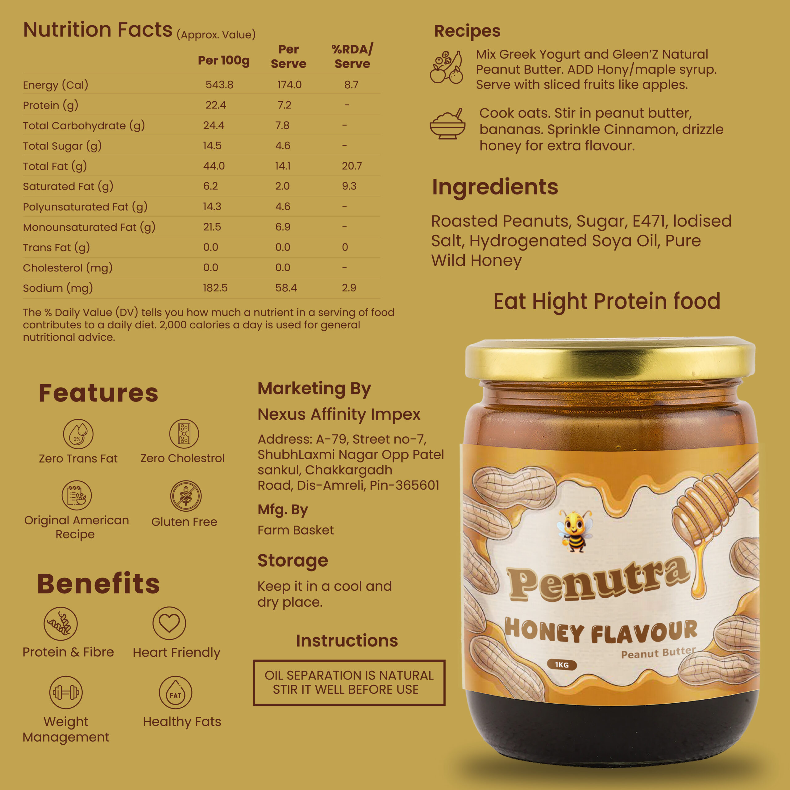 Our Honey Peanut Butter is a naturally sweetened blend of smooth roasted peanuts and real honey. This creamy, delicious spread offers a nutty flavor with a hint of sweetness – ideal for toast, fruits, or snacks. No artificial sweeteners, just nature’s best in every jar.