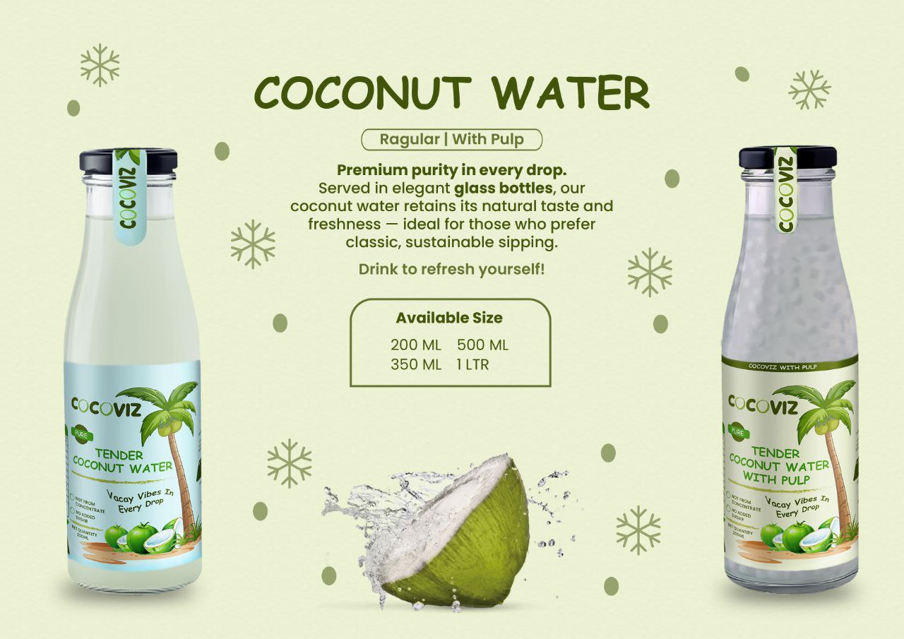 Quench your thirst naturally with our Tender Coconut Water, sourced from the freshest young coconuts. Rich in essential electrolytes, low in calories, and naturally hydrating, it’s the perfect drink for any time of day. Whether you’re post-workout, on the go, or simply relaxing, enjoy a revitalizing boost straight from nature. Available in glass and plastic bottles to suit your lifestyle.